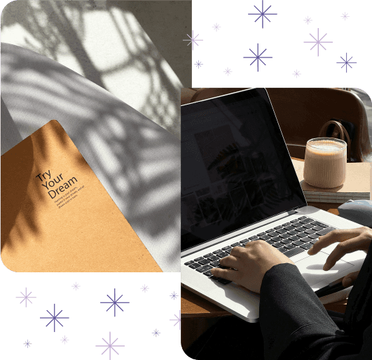 فنكوّن توجه إبداعي لها أولاً وبعد الاعتماد نصممها مع التطبيقات مثل المطبوعات، الموقع، الإطلاق، و يتم تسليم المشروع في الختام! 🥳